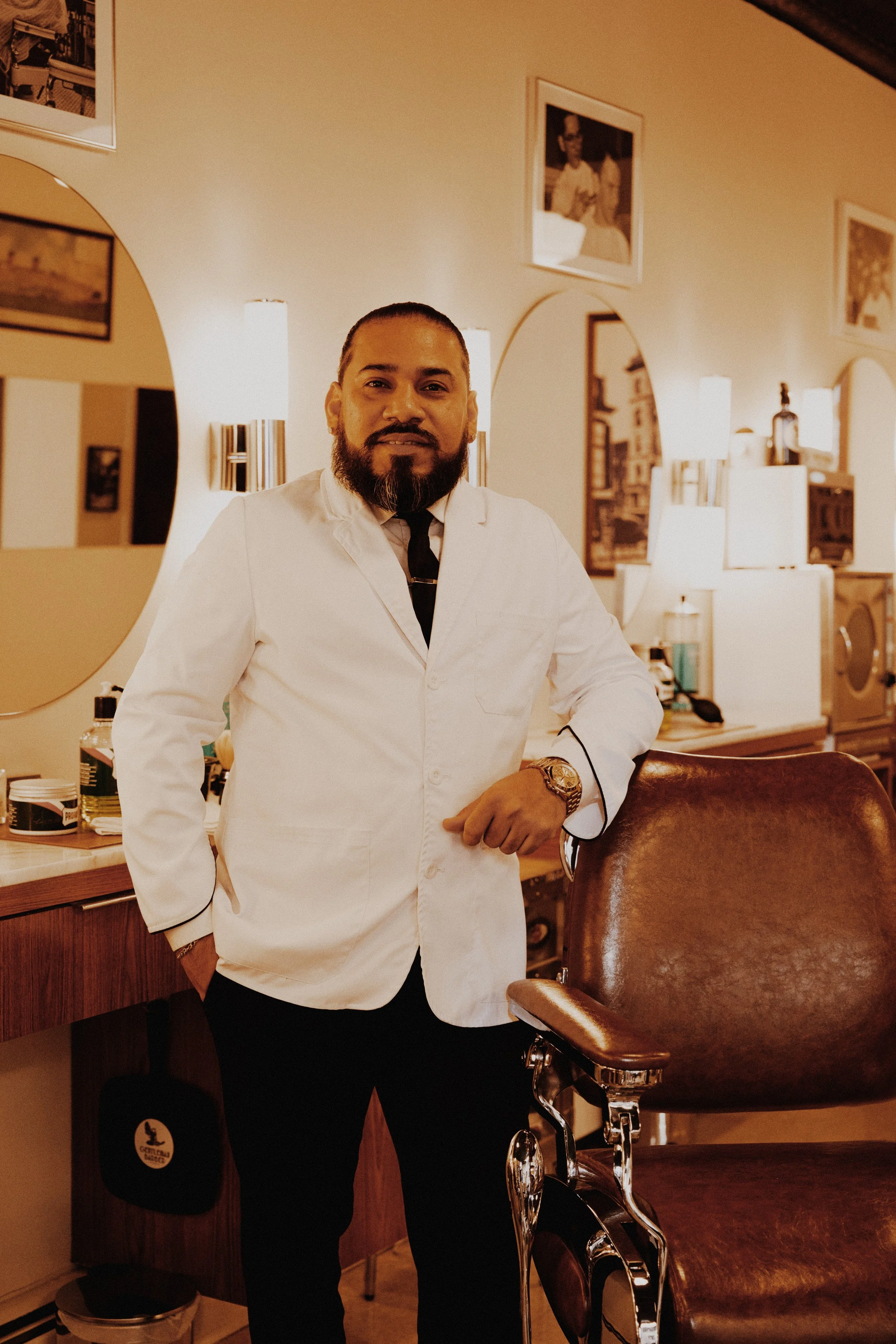 Originally from Ecuador, Louie brings over a decade of mastery to the chair — and an approach to grooming that is as much about the experience as the result. His signature clean skin fade is among the sharpest in Hoboken, and his command of the Italian Shave earned recognition from Proraso educator Sheldon Marcelle, who noted his natural ease with the craft. Every service under Louie's hands is unhurried, deliberate, and finished to the last detail — guests don't just leave looking their best, they leave feeling it. A man of few words, Louie lets the experience speak for itself. Sit with Louie. Leave like a Gentleman.